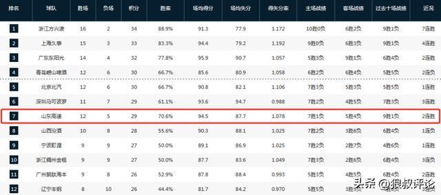 山东男篮目前的战绩为12胜5负,排在积分榜第7位置。